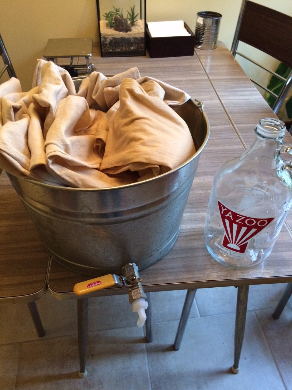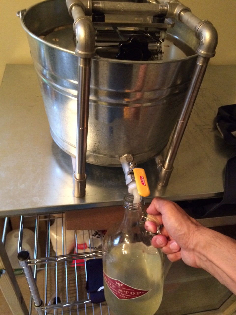 So far we got one and a half growlers of fresh Sake. The Fune presses the bags slowly over night. I expect to wake up tomorrow morning with another two and a half growlers of Sake. Yeah!