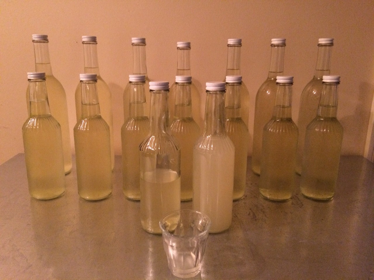 Batch #4 bottled. Lessons learned – Sake from unpolished rice has some off-flavor, which Ginjo-shu [吟醸酒] from well-polished rice doesn’t have. Dryness of this batch was good, but the previous batches had more “pure” flavor of rice. This batch was still 100% from rice, or Jummai [純米], and tasted much better than cheap table Sakes with added distilled alcohol, though.