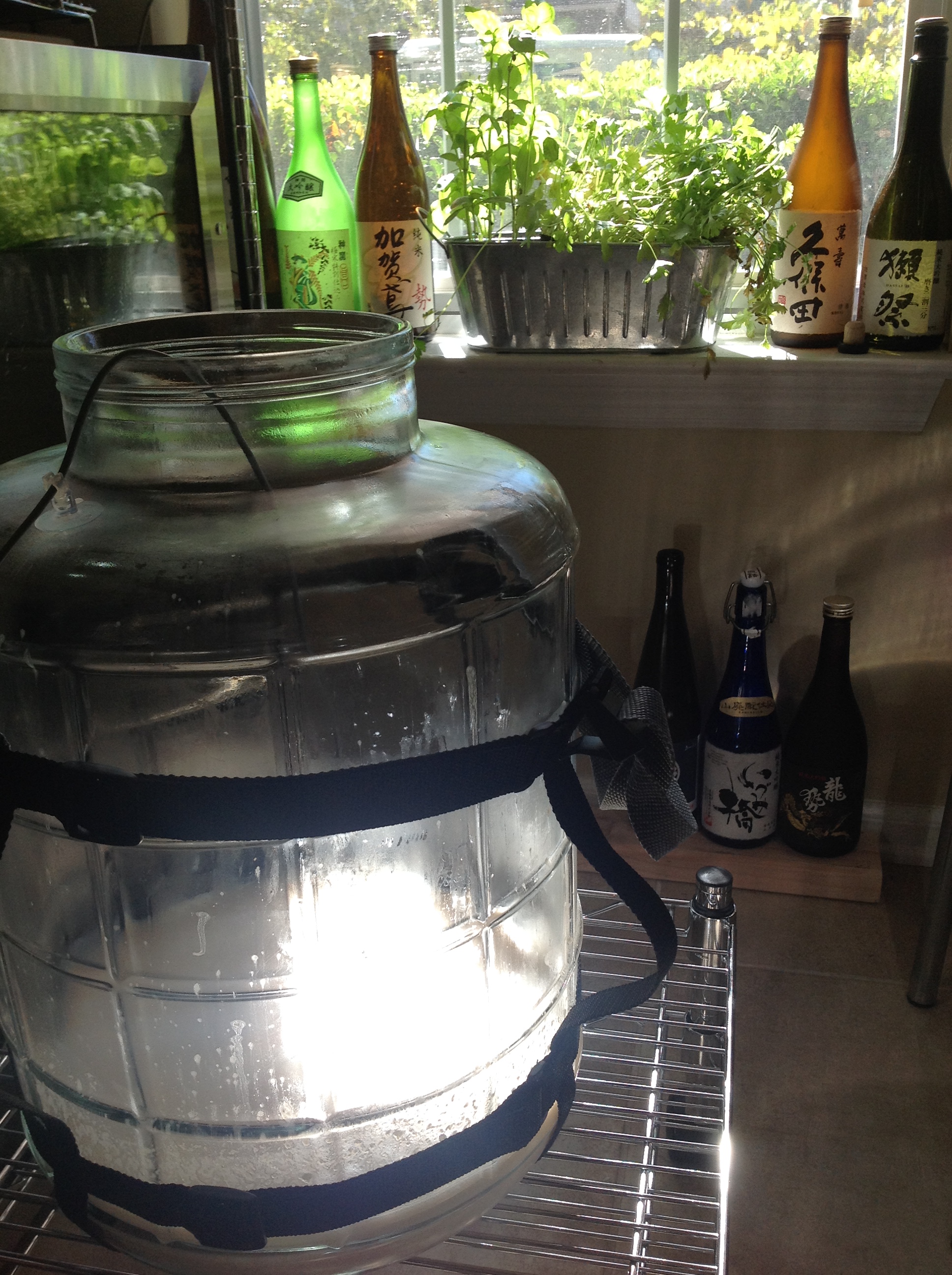 Hatsuzoe [初添え], or the first of the three-step mash build-ups, completed. The build-up process, called Shikomi [仕込み], is performed over four days. The second day, tomorrow, is the rest day, or Odori [踊り], when the mash is left alone (except some stirring) to give yeast some time to adjust to the new environment. The third day is Nakazoe [仲添え] and the last Tomezoe [留添え]. At each step, the volume of the mash will be doubled by adding water, koji and steamed rice. So, Batch #6 will be fully built up by Monday.